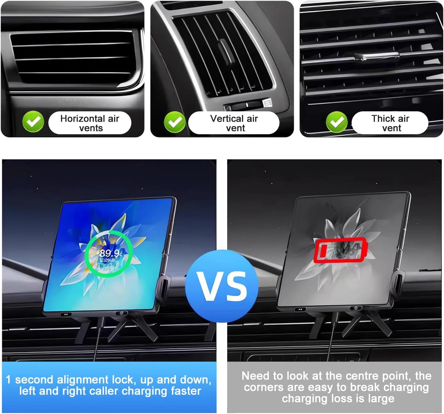 From compact smartphones to large-screen tablets, this wireless charging holder is built to adapt. Its adjustable clamp arms and strong grip support a wide variety of devices—including foldables, straight-screen phones, and tablets—without compromising on stability or charging efficiency.